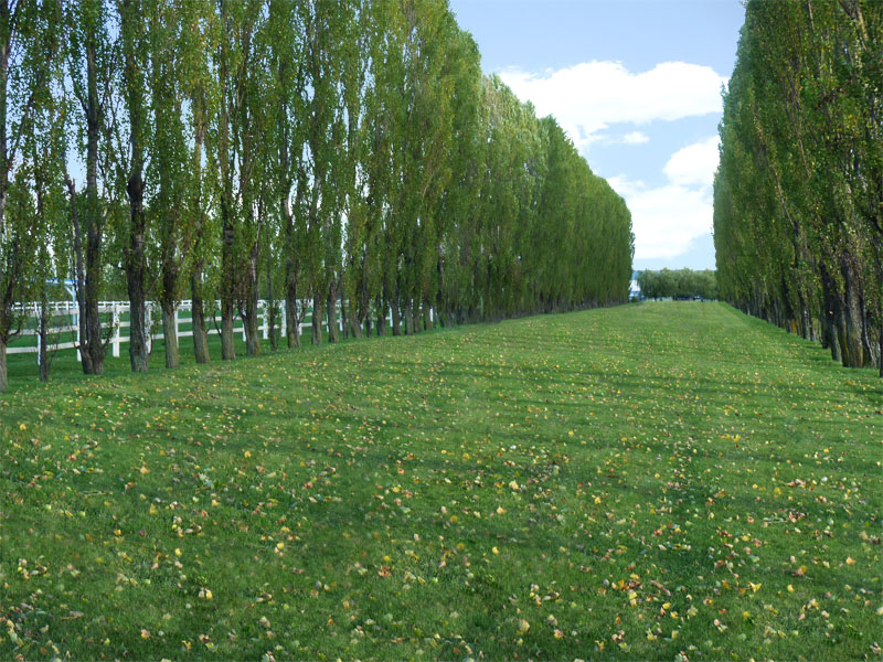 Well, the line of grass under the line of trees is like that simply because the lawnmower did not complete it's work that day, the original is like that :-)