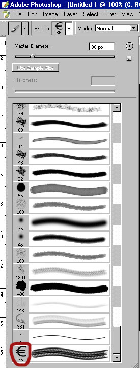 Step 3. Now make a new layer. As you can see, you will find your new brush at the bottom of all of your current brushes. Select it.