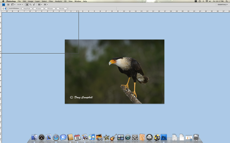I am using an iMac with CS4 Extended. When editing an image this keeps happening. A partial "frame" or border appears from the right, left, or top. Any suggestions as to how to get rid of it? I have already tried going to "view" and unchecking "extras". This is driving me crazy!