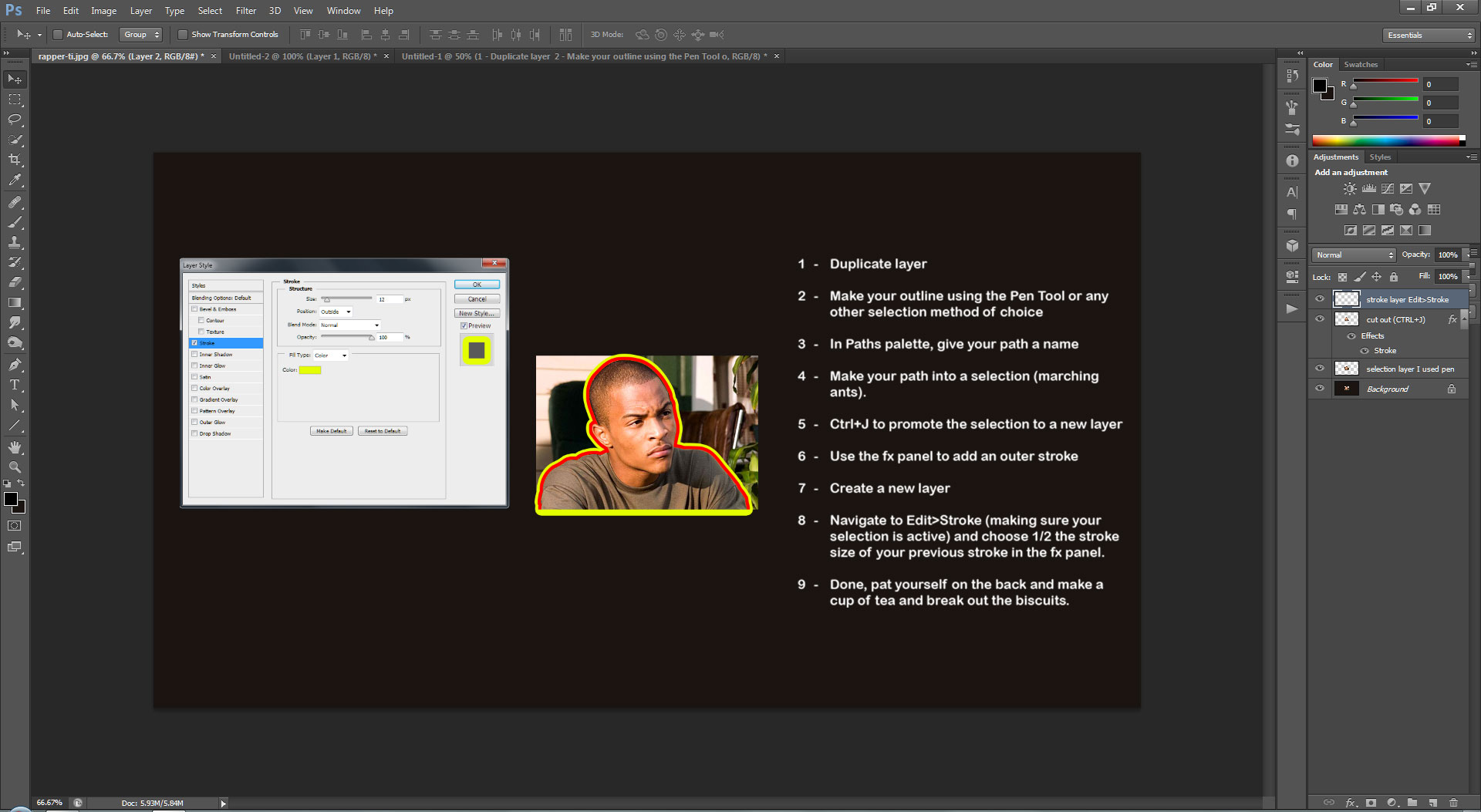 * Point of note, in my image because I extended the canvas to fit in the tutorial notes the stroke extends beyond the bounds of the image, obviously this won't occur with your image.
