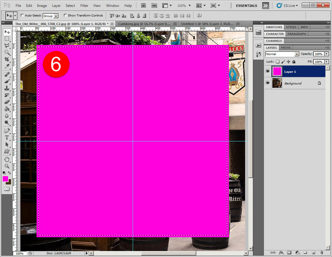 02. Click the View menu > New Guide > Vertical > 50% > OK. Repeat to create a horizontal guide at 50%