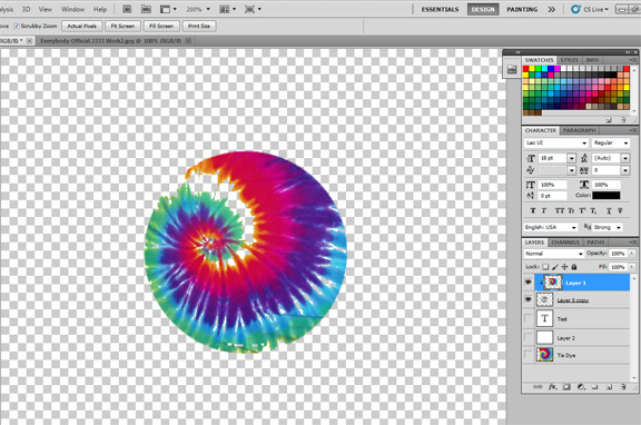 | Tie Dye color I'm trying to create clipping mask out of to use on the logo instead of the logos previous color (black) |