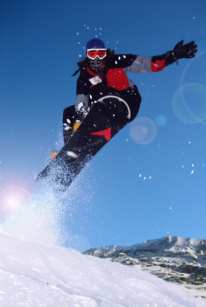 I like your picture...I think it needs some movement..snow blowing around..so I added a little snow happening thing from another picture..and lense flare..I think it also helps to leave the hair flying around as per the original (don't cut it out) it shows movement)