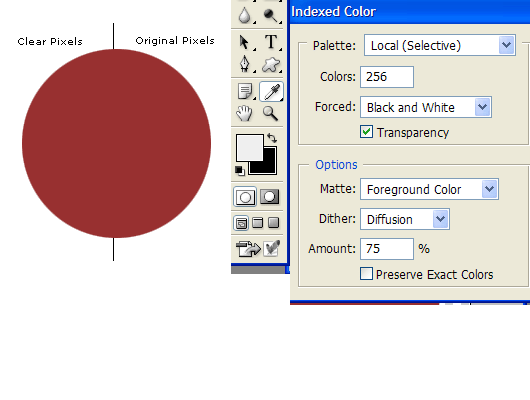 make a black-to-white gradient, save it. save it again as a dithered gif with 2 colours. then open this gif and zoom way in. You'll notice quite a difference compared with the non-dithered one.